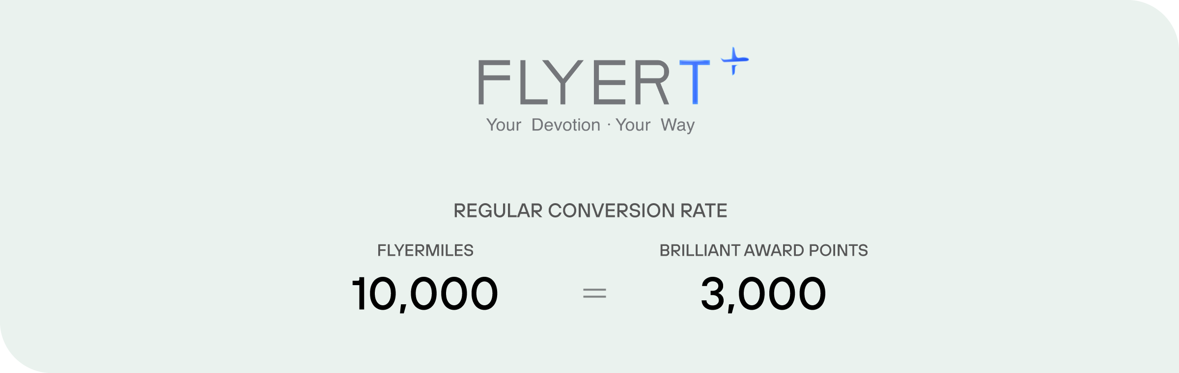 8. Members can convert Flyermiles from their personal FLYERT accounts for Brilliant Award Points. The regular conversion rate is 10,000 Flyermiles for 3,000 Brilliant Award Points, with a minimum conversion of 10,000 Flyermiles per transaction.