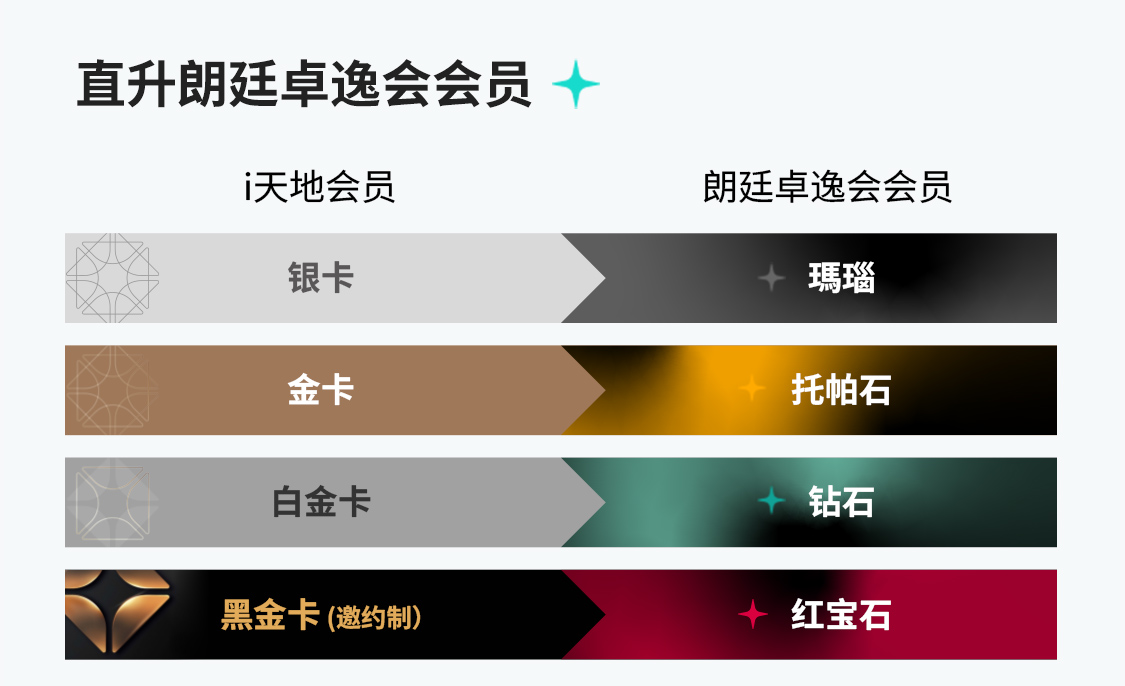 礼遇二:朗廷卓逸会及i天地会员专享礼遇 - 会籍匹配及额外奖励积分#1